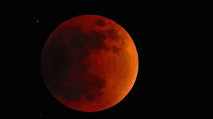 - الخسوف الكلي: 08:30 مساءً، يتحول القمر للون الأحمر الدموي، يظهر اللون الأخضر المزرق على الحواف.
