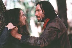 Abigail Williams (Winona Rider) envolve-se com John Proctor (Daniel Day-Lewis),